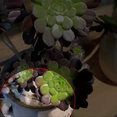 叶子表面宽厚,富肉质感且带有磨纱质感,看像石头质地;开红色小花,生于植株顶部,倒伞形密生,形状像花…