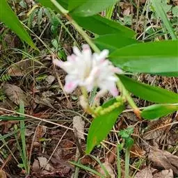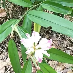 花叶山姜(学名:Alpinia pumila Hook.F.),为姜科,山姜属多年生草本植物,无地上茎;根茎平卧。叶片椭圆形,长圆形或长圆状披针形,长达可达15厘米,叶面绿色,叶背浅绿;两面均无毛,叶舌短,叶鞘红褐色。总状花序自叶鞘间抽出,花对生,花萼管状,紫红色,花冠白色,裂片长圆形,唇瓣卵形,白色,有红色脉纹;子房被绢毛。果球形,4-6月开花;6-11月结果。