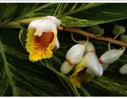 密苞山姜是姜科,山姜属多年生草本植物,株高可达1.5米。叶片椭圆状披针形,顶端渐尖,并具细尾尖,基…