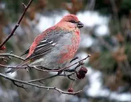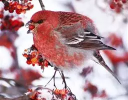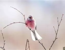 北朱雀,是燕雀科朱雀属鸟类。雄鸟额和头顶前部珠白色具窄的粉红色羽缘,…