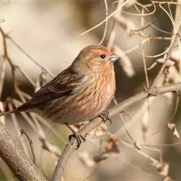 红眉朱雀:体长15厘米,是一种中等体型的朱雀。上体褐色斑驳,眉纹、脸颊、胸及腰淡紫粉,臀近白。…