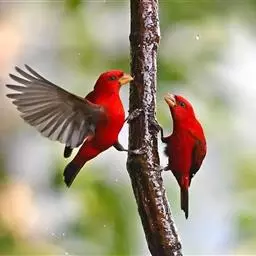 红额金翅雀(学名:Carduelis carduelis):共有14个亚种。小型鸟类,体长12-14厘米。额、脸颊和颏朱红色,眼先和眼周黑色,在淡色的头部极为醒目。上体灰褐或乌褐色,尾上覆羽白色,两翅和尾黑色,翅上有黄色斑。下体喉、胸灰褐或乌褐色。其余下体白色。