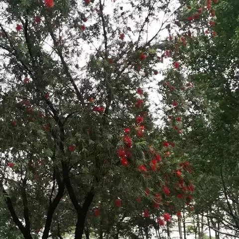 红千层是桃金娘科红千层属的常绿小乔木植物。红千层树皮坚硬,灰褐色,嫩枝有棱,初时有长丝毛,…