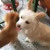 除了作上述的干洗之外,还要替它作定期的湿洗。每次湿洗之后,要先用干毛巾吸尽水分,再用电吹风吹干。边吹边梳理。至于多长时间湿洗一次,这要视季节和气沮而定,原则上天凉时间隔可长一些;天热时间隔要短一些,隔3-5天就要湿洗一次。