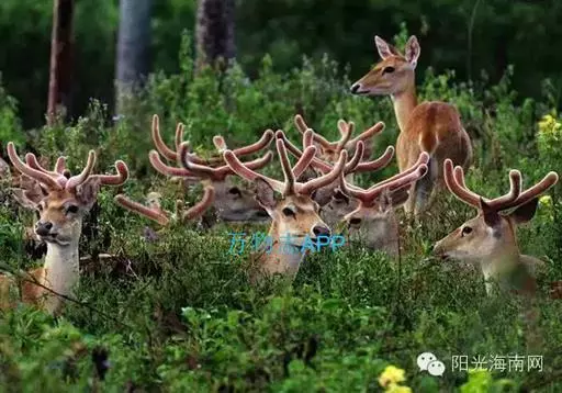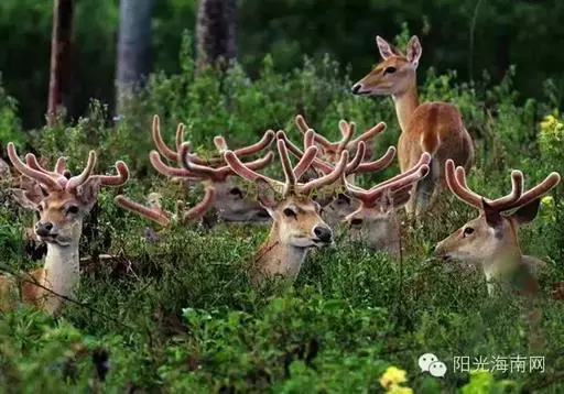 坡鹿喜食青草和嫩树枝叶,为食草性动物。栖息在丘陵草坡地带,分布于东南亚及中国的海南岛,为国家一级保护动物。