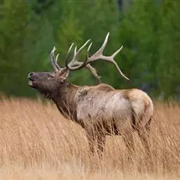 白唇鹿:体形高大,体长约2米,通体被毛十分厚密,毛粗硬且无绒毛,毛色在冬夏有差别。鼻端两侧、下唇记…