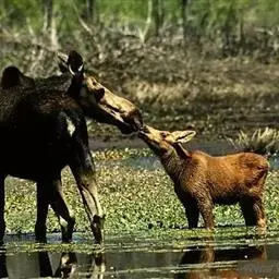 麋鹿是鹿科、麋鹿属唯一的鹿类动物。因为它头脸狭长像马、角像鹿又与其它鹿略有不同、蹄子宽大像牛、尾细长像驴,因此又名四不像。它的角形独特,形状与其它鹿的犄角正好相反,前杈再分小杈,而后杈几乎不分叉。头大,吻部狭长,鼻端裸露部分宽大,眼小,眶下腺非常显著。四肢粗壮,主蹄宽大、多肉,有很发达的悬蹄,行走时带有响亮的磕碰声。麋鹿喜好沼泽湿地生境,以青草和水草为食物。性好合群,善游泳,喜欢以嫩草和水生植物为食。夏季求偶发情,比其它大多数鹿类都早一个季度。麋鹿曾广布于东亚地区,后来由于自然气候变化和人为因素,在汉朝末年就近乎绝种,最后的麋鹿种群残存于长江中下游湿地。元朝时,为了供游猎,残余的麋鹿被捕捉运到皇家猎苑内饲养。到19世纪时,只剩在北京南海子皇家猎苑内一群。在西方发现后不久被八国联军捕捉并从此在中国消失。直到1898年被英国购买并繁殖到255头