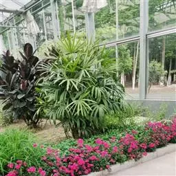 棕竹 A. Henry)棕榈科棕竹属丛生灌木植物,茎为圆柱形,有节;叶呈掌状深裂,…