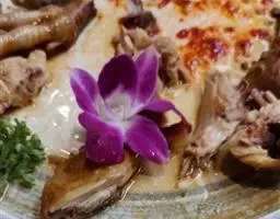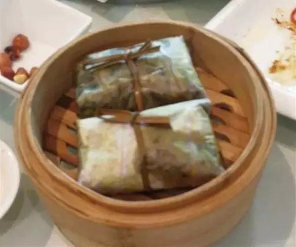 糯米鸡 拆开荷叶时清香扑鼻,鲜味四溢,糯米润滑可口,鸡肉味道完全渗透到糯米之中,荷叶的清香回味悠长,开胃爽口,风味独特。