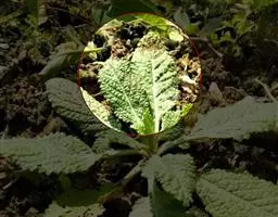 广防风又名落马衣,中国传统草药的一种,主要用于祛风止痛。为直立粗壮草本,高1~2米;茎方柱形,多分枝,密被白色伏贴短柔毛。生于林缘、路旁等荒地上。