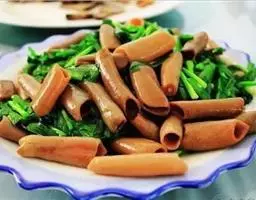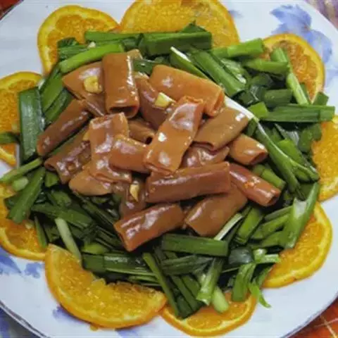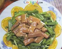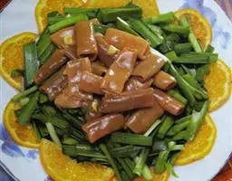 1.锅内放适量油,将糯米肠,红衣香肠放入,小火慢慢煎至皮焦黄。