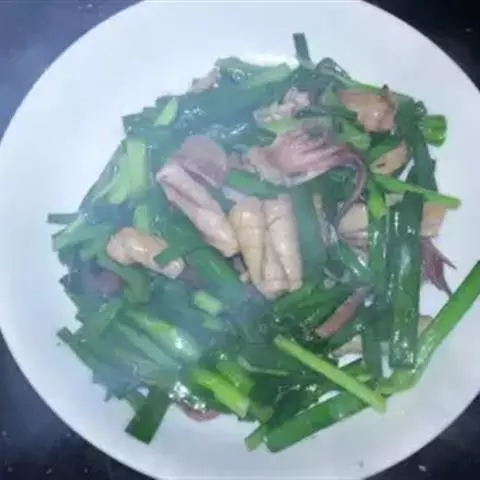 4.锅内入油,先将萝卜干,蒜瓣炒香,再淋入鸡蛋煎熟做成菜脯蛋。