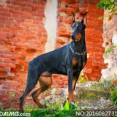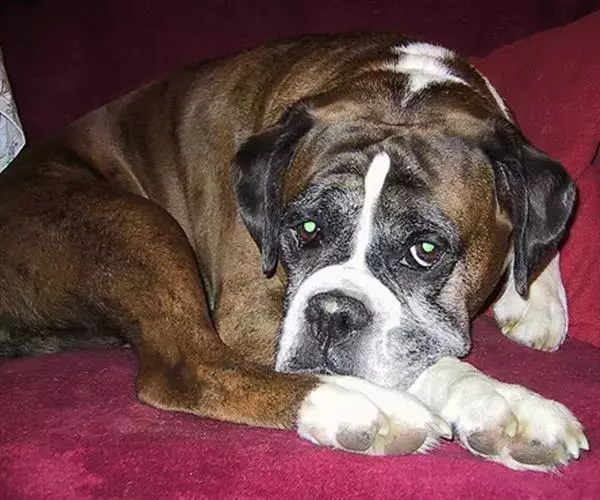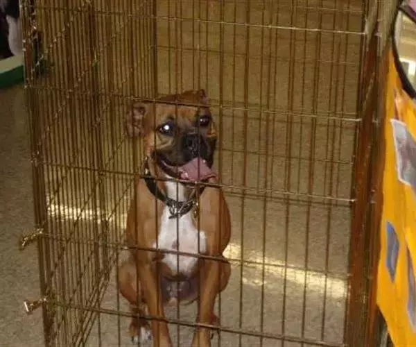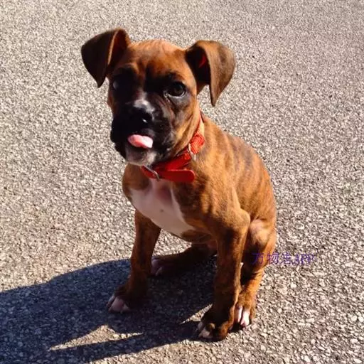 拳师犬,原产地德国,体形外貌漂亮强健。头和身体很相称,鼻大而黑。耳生长位置较高,常人工切去耳尖。眼黑色。颈圆柱形很强壮,富有肌肉,无下垂皮肤。躯体呈正方形,尾巴人工切除(欧洲等国,人性化开始留尾,留耳),尾短,始终高举。前肢直立、平行。忠诚,不记仇。尤其对儿童富有感情,易训练,可用作警犬、护卫犬、个人警卫犬,也可用于导盲犬。由于其服从性好,也是一个很好的伴侣犬。