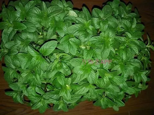 1. 叶横切面:上表皮细胞长方形,下表皮细胞细小扁平,均被薄角质层,有气孔;上、下表皮凹陷处有腺鳞。栅栏组织通常为1列细胞,海绵组织为4~5列细胞。主脉上、下表皮内方有厚角组织。主脉维管束外韧型,木质部导管常2~4个排列成行,韧皮部细胞极小。表皮细胞、叶肉细胞、薄壁细胞及导管中有时含橙皮苷结晶。茎横切面;表皮细胞1列,外被角质层具齿疣,有时具毛。四角有明显的棱脊,向内有10数列厚角细胞,内缘为数列薄壁细胞,细胞间隙大,内皮层1列,凯氏点明显。维管束于四角处较发达,于相邻两角间具数个小维管束。韧皮部狭窄;木质部于四角处较发达,由导管、本薄壁细胞及木纤维等组成,髓部为薄壁细胞组成。茎各部细胞内有时含有针簇状橙皮苷结晶。