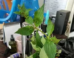 水薄荷,别名大叶石龙尾、水八角。一年生草本,揉之有八角香气,茎粗壮,肉质,高30~60厘米。叶对生,具柄,椭圆形或卵形,长5~8厘米,基部渐狭成一长达2.5厘米的柄,边缘有小锯齿,背面有无数小腺点,常有皱纹,脉多数,粗壮。花夏秋开,单生或密聚成头状花序,花萼被毛,萼片披针形I花冠二唇形,蓝紫色,口部黄色,长约8毫米,上唇2裂,近直立,下唇3裂,扩展,雄蕊4枚,内藏。蒴果椭圆形,约与萼等长。