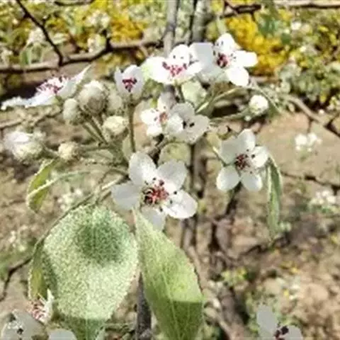 新疆梨是蔷薇科、梨属植物乔木。高达6-9米,树冠半圆形,枝条密集开展;叶片卵形、椭圆形至宽卵形。…