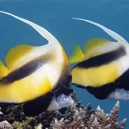 马夫鱼。成鱼体甚侧扁,背缘高而隆起,略呈三角形。背鳍鳍棘11根,第四鳍棘延长呈鞭状,鳍膜亦随之延长…