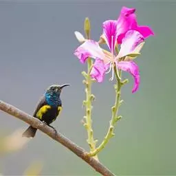 黄腹花蜜鸟是雀形目太阳鸟科花蜜鸟属鸟类。体型较小、喙略短而弯、腹部黄色。…