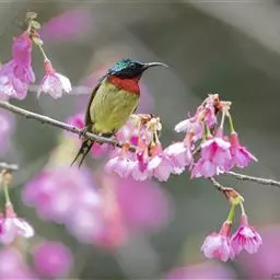 纹背捕蛛鸟:为太阳鸟科捕蛛鸟属的鸟类。是太阳鸟科中体型较大的一种,体重25-45克,…