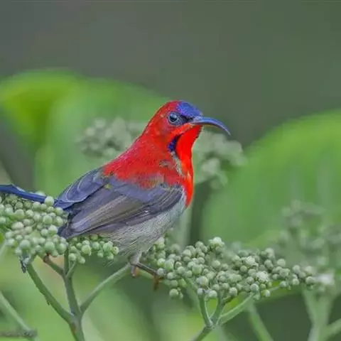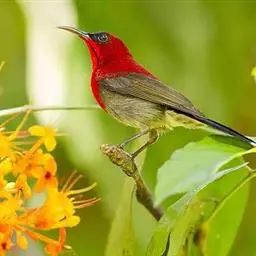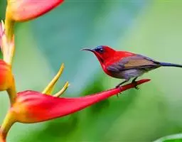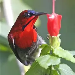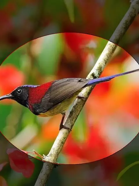 火尾太阳鸟为太阳鸟科太阳鸟属的鸟类。体长20厘米,色彩艳丽。雄鸟红色,具形长的艳猩红色中央尾羽。…