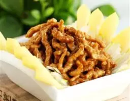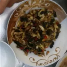 10、炒匀后盛盘即可。此菜应适当多加点糖,稍带甜口,味道更佳。