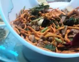 6、起油锅爆香葱姜,滑熟肉丝,盛起备用。