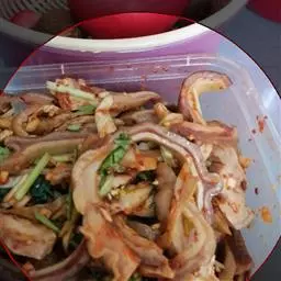 8、倒入笋丝翻炒后加水(可以用煮竹笋的水)焖2-3分钟。