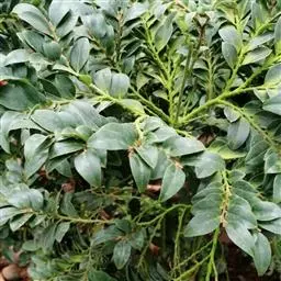 多枝常绿矮灌木,幼枝绿色,老时深褐色,树干黑褐色。嫩枝、嫩叶和冬芽有锈色柔毛。新生嫩叶褐红色。