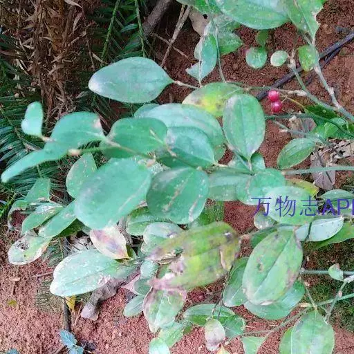 菝葜,菝葜科菝葜属 多年生藤本落叶攀附植物,茎干较粗,嫩白色,呈圆柱形,表面带有小刺;叶子较大,…