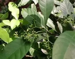 灌木或小乔木,高达4m。除花萼及托叶被微柔毛外,全部无毛。叶对生;叶柄长5-8mm;托叶长5-8mm,下部合生;叶片卵状长圆形、长圆形至披针形,长6-13cm,宽2-6cm,先端急尖或钝尖,基部宽楔形。聚伞花序热电厂成伞房状,腋生,稠密多花;总花梗长不及8mm;花黄绿色,4数;花萼简长约1mm,先端不明显4裂;花冠简长约3mm,裂片与花冠简等长,开放后反卷;雄蕊生于喉部,伸出。浆果近球形,直径4-8mm,熟时橙红色,干后黑色,先端有环形的萼檐残迹。花期5-7月,果期8-9月。