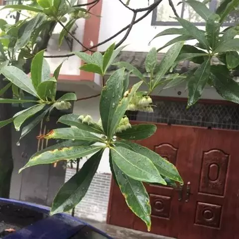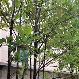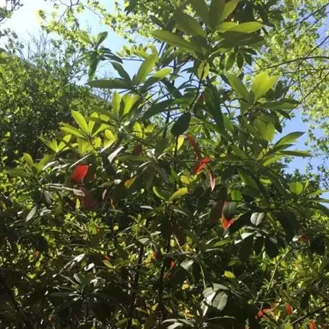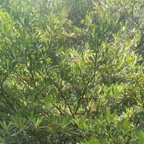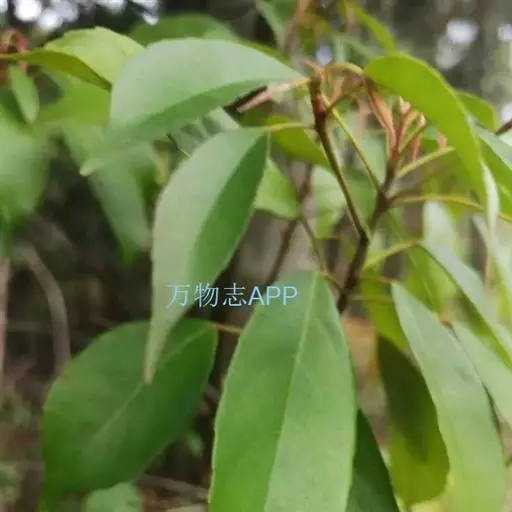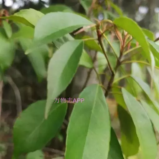 常绿小乔木,高3-7米;嫩枝有柔毛,老枝秃净,干后黑褐色。叶薄革质,卵状披针形或披针形,长5-8厘米,宽2-3厘米,先端渐尖,基部圆形,稀为阔楔形,上面绿色有光泽,下面有细小黑腺点,在芽体开放时上面略有疏毛,很快上下两面变秃净,侧脉4-6对,在上面隐约可见,在下面稍突起,网脉不明显,边缘有波状小钝齿;叶柄纤细,长1.5-2厘米,幼嫩时略被毛。