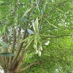 水石榕是杜英科杜英属小乔木。树冠宽广;幼枝无毛;叶革质,窄倒披针形或长圆形,先端尖,基部楔形,…