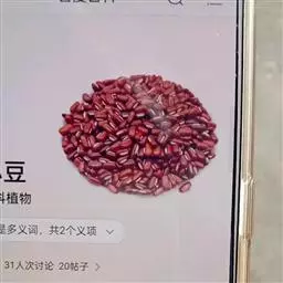 2、赤豆种子近矩圆形而稍扁,直径4-6mm,与赤小豆的主要区别为种脐平而不突起,中央也不凹陷。