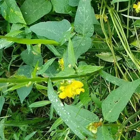 赤豆是一年生、直立或缠绕草本植物。高30-90厘米,植株被疏长毛。羽状复叶具3小叶;托叶盾状着生,箭头形,长0.9-1.7厘米;小叶卵形至菱状卵形,长5-10厘米,宽5-8厘米,先端宽三角形或近圆形,侧生的偏斜,全缘或浅三裂,两面均稍被疏长毛。
