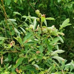 落叶灌木,高达3-5米,枝条细弱开展;小枝圆柱形,微有稜角,无毛,幼时红褐色,老时褐色;冬芽三角卵形,先端钝,平滑无毛,暗紫红色。叶片椭圆形,长椭圆形至长圆倒卵形,长3.5-6.5厘米,宽1.5-3.5厘米,先端圆钝或急尖稀有突尖,基部楔形或宽楔形,全缘,稀中部以上有钝锯齿,上下两面均无毛;叶柄短,长5-15毫米,或近于无柄;不具托叶。