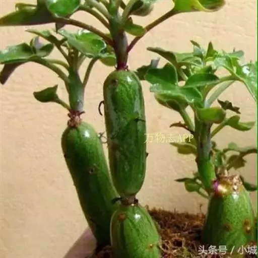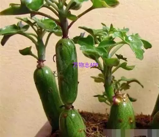 多年生落叶多浆植物。枝伸展。株高30-60cm,冠径不定。茎短圆柱状,匍匐茎上具多数短匍枝,粉蓝色,具灰色斑点,具节。叶扁平,圆形或卵形,3~5裂,叶柄与叶片等长或更长。带锦品种(Senecio articulatus ‘Variegatus’)叶片具乳白色和粉红色斑点(叶片夏季可能呈蓝绿色),不带锦品种(Senecio articulatus)植株通体呈蓝绿或翠绿。头状花序稍扁平,花小,杯状,黄色,秋季至春季开放。 七宝树 无锦品种