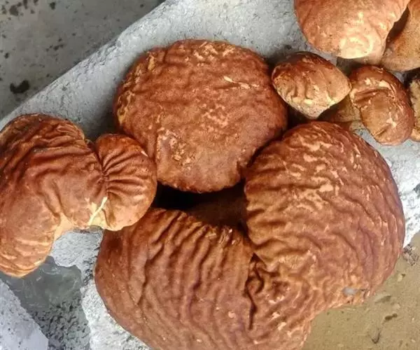 香菇子实体单生、丛生或群生,子实体中等大至稍大。菌盖直径5-12cm,有时可达20cm,幼时半球形,后呈扁平至稍扁平,表面菱色、浅褐色、深褐色至深肉桂色,中部往往有深色鳞片,而边缘常有污白色毛状或絮状鳞片。菌肉白色,稍厚或厚,细密,具香味。