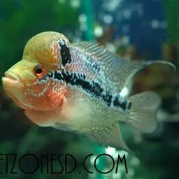 金菠萝鱼,Cichlasoma severum,慈鲷科丽体鱼属。成鱼体长20~25cm,厚侧扁形,…