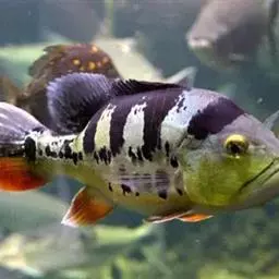 明显的五道黑色竖纹 也称赤鲈、五道黑,隶属于鲈形目鲈亚日鲈科鲈属。河鲈体侧扁,呈长椭圆状,头尖、小,略呈三角形;体呈棕褐色,背部颜色较深,体侧从第一背鳍起点至第二背鳍末有5条较宽的黑斑,腹部颜色灰白。