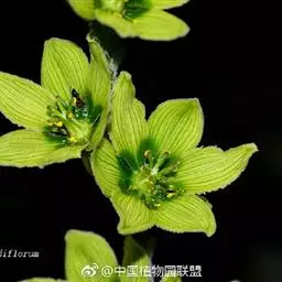 茎或分枝顶部有由2朵花组成的简单的单歧聚伞花序;苞片三角状心形,边缘生牙齿;花梗长(1.5-)2-10厘米;萼片5,黄色,倒卵形或狭倒卵形,长1-1.8(-2.5)厘米,宽0.6-1.2(-1.5)厘米,顶端圆形;雄蕊长4.5-7(-9)毫米,花药长圆形,长1-1.6毫米,花丝狭线形;心皮(5-)7-12,与雄蕊近等长,无柄,有短花柱。蓇葖长约1厘米,宽约3毫米,具横脉,喙长约1毫米;种子狭卵球形,长1.5-2毫米,黑色,有光泽,有少数纵皱纹。5-9月开花,6月开始结果。