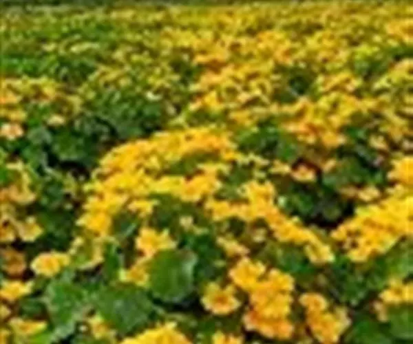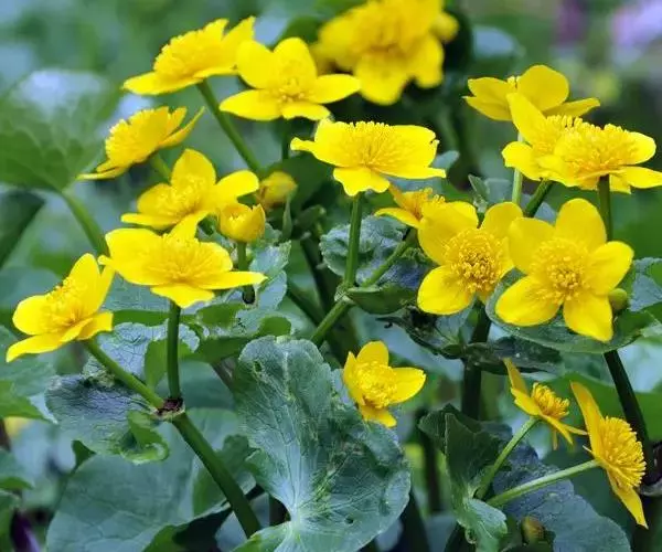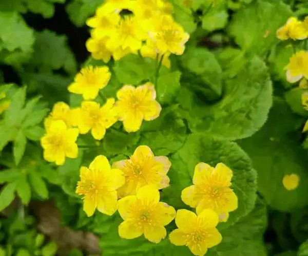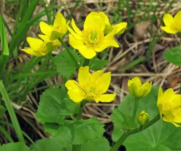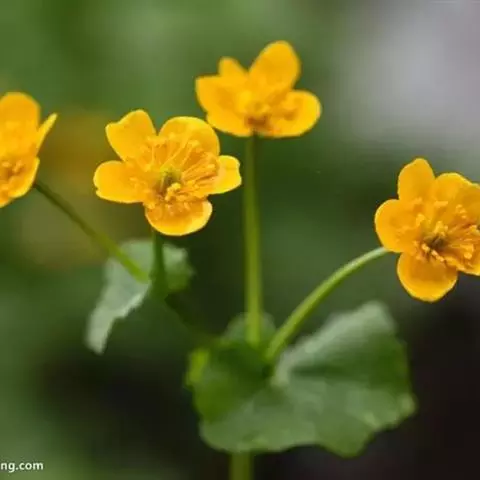 驴蹄草(学名:Caltha palustris L.)是毛茛科,驴蹄草属多年生草本植物,全部无毛,有多数肉质须根。茎高可达48厘米,实心,具细纵沟,基生叶有长柄;叶片圆形,圆肾形或心形,顶端圆形,基部深心形或基部二裂片互相覆压,边缘全小齿;聚伞花序;苞片三角状心形,边缘牙齿;萼片黄色,倒卵形或狭倒卵形,花药长圆形,花丝狭线形;种子狭卵球形,黑色,5-9月开花,6月开始结果。