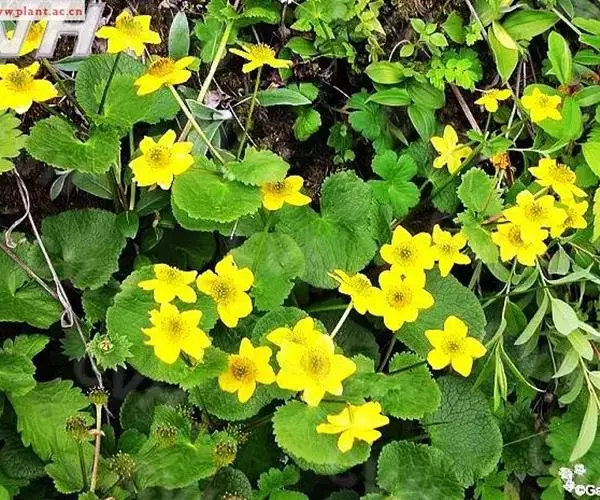 与驴蹄草的区别:叶多为宽三角状肾形,基部宽心形,边缘只在下部有牙齿,其他部分微波状或近全缘。