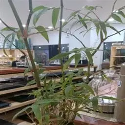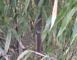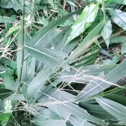 凤尾竹 Raeusch. ex Schult. ’Fernleaf’ R. A. Young)是禾本科,簕竹属孝顺竹的变种。植株较高大,杆高可达6米,竿中空,小枝稍下弯,下部挺直,绿色;竿壁稍薄;节处稍隆起,无毛;叶鞘无毛,纵肋稍隆起,背部具脊;叶耳肾形,边缘具波曲状细长繸毛;叶舌圆拱形,叶片线形,上表面无毛,下表面粉绿而密被短柔毛,小穗含小花,中间小花为两性;外稃两侧稍不对称,长圆状披针形,先端急尖;内稃线形,脊上被短纤毛,花药紫色,子房卵球形,羽毛状。成熟颖果未见。原产中国,华东、华南、西南以至台湾、香港均有栽培。凤尾竹喜温暖、湿润和阳光充足的环境,耐寒。宜土层深厚、肥沃、疏松的微酸性壤土。该种观赏价值较高,宜作庭院丛栽,也可作盆景植物。全草或根入药,味淡、微苦,性寒,有清热利湿、凉血止血、消肿解毒功效,可治痢疾、泄泻等多种病症。凤尾
