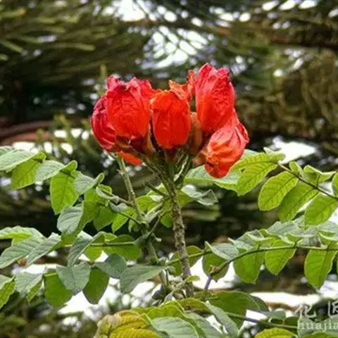 火焰木,又名苞萼木、喷泉树,为紫葳科常绿大乔木,株高10—20米,叶为奇数羽状复叶,对生,较大,斜…