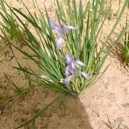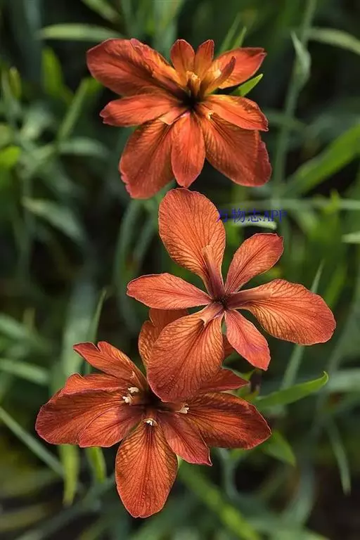 双色野鸢尾为多年生草本植物,叶子呈剑状淡绿色。…