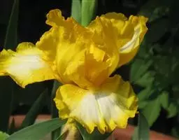 亮叶鸢尾为常绿多年生草本植物。叶面光滑、亮绿色,花茎扁平叶状。原产于巴西。