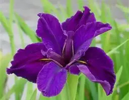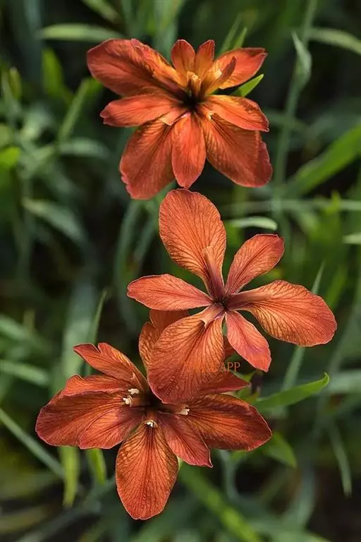 路易斯安娜鸢尾是鸢尾科鸢尾属多年生常绿草本植物,耐湿也耐干旱,但湿地生长明显比旱地生长良好,在水深30~40厘米水域发育健壮。冬季生长停止,但叶仍保持翠绿。3月中旬前后,具4~5片基生叶的单株。顶芽开始分化为花芽,4月拔节抽出花序,5月中旬开花。花后,越夏期间抗热性较强。