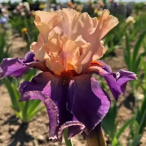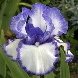 路易斯安娜鸢尾花茎高80~100㎝。花单生,为蝎尾状 聚伞花序,着花 4~6朵,单花寿命2~3天,单花序 花期12~15天。 花器:路易斯安娜鸢尾具 旗瓣(内瓣)3枚,垂瓣(外瓣)3枚,雌蕊瓣化。 果实:花后结蒴果,果实3室,外形六棱。 种子:果实9月上旬前后成熟,每果有种子30粒左右,千粒重约250克。 根茎:路易斯安娜鸢尾未开花的侧芽,花后延伸,形成地下扁圆形棍棒状的根茎,根茎长约30㎝,粗2㎝左右。具12~20个节。每节都能长出吸收根。根茎的顶芽一般第二年开花,侧芽成为营养株。中下部芽多数为休眠芽。11月营养生长仃止,半休眠越冬。根茎寿命一年。