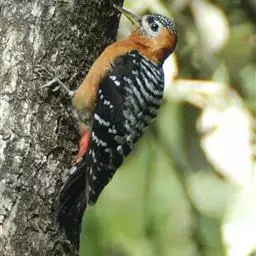 棕腹啄木鸟为啄木鸟科,啄木鸟属是中等体型的鸟类,体长约20厘米。头顶部具红色斑带。脚强健,有趾4个,…