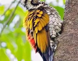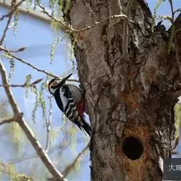 大斑啄木鸟隶属鸟纲鴷形目啄木鸟科。雄鸟头顶黑色,枕部红色,眼先、颊部和耳羽白色,颈部污白色,…